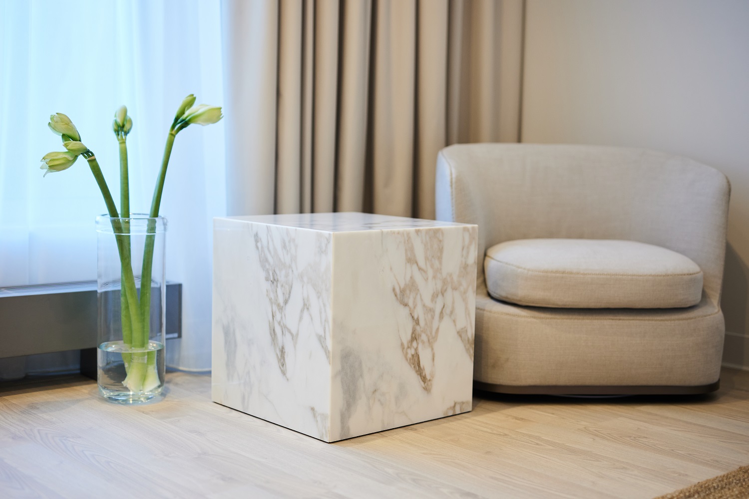 Оттенок Дуб Песочный идеально подходит для небольших комнат — такие молочные тона прекрасно расширяют пространство, добавляя комнате света и тепла.